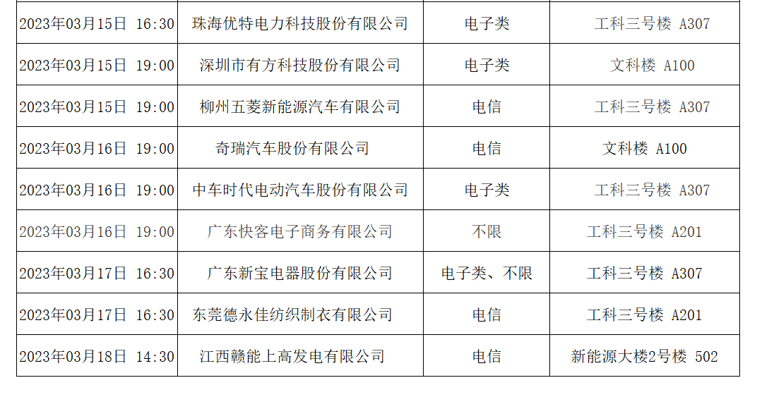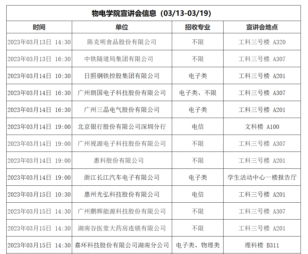 物电学院3.13-3.19宣讲会预告