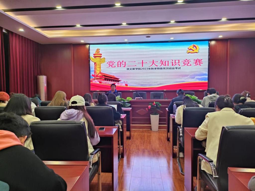 为深入落实并贯彻落实党的二十大精神,积极探索“互联网+党建”的新模式,进一步提升预备党员的理论知识能力水平,11月16日19时10分,“党的二十大知识竞赛暨文新学院2023年秋季预备党员结业考试”于雷竞技官网金盆岭校区九号教学楼218室成功举行。
