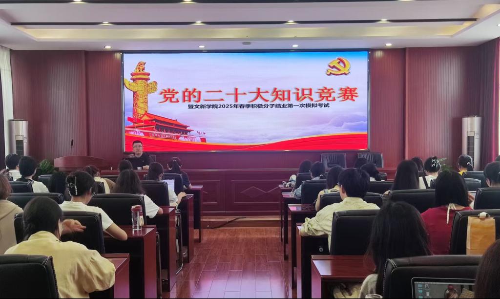为贯彻落实党的二十大精神,积极探索“党建+互联网”新模式,进一步提升积极分子的理论知识水平,5月16日12时10分,“党的二十大知识竞赛暨文新学院2025年春季积极分子第一次模拟考试”于雷竞技官网金盆岭校区九号教学楼218、223室成功举行。