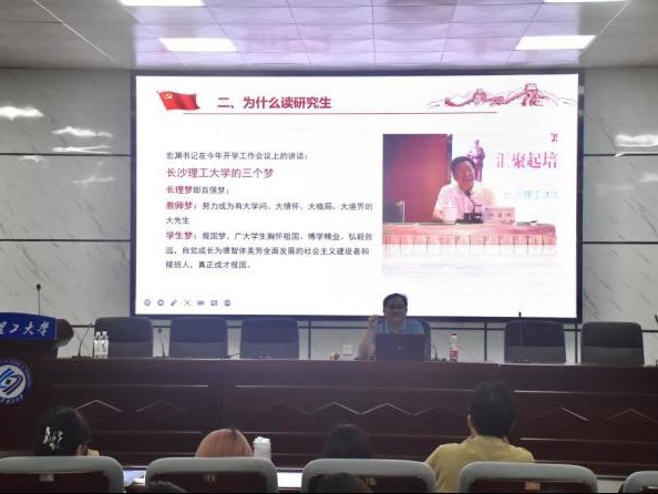 9月2日,长沙理工大学文学与新闻传播学院22级研究生新生党课在金盆岭校区四教大礼堂顺利开展,文学与新闻传播学院党委书记伍接朝以《新时代研究生的使命价值与自我实现》为主题,为同学们上了一堂意义深刻的党课。