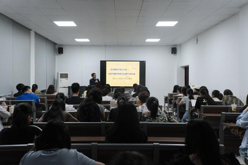 2024年6月4日晚,长沙理工大学文新学院通识讲座暨人文素质大讲堂之“在诗意的大地上行走——如何开展非物质文化遗产田野考察”专题讲座在金盆岭校区9教417举行。长沙理工大学文学与新闻传播学院教授、湖南省民俗学会理事、湖南省文化和旅游厅非遗评审专家郑劭荣老师在讲座上与长理学子深入探讨了开展非物质文化遗产田野调查的过程、价值和意义,同学们纷纷表示收获颇多。