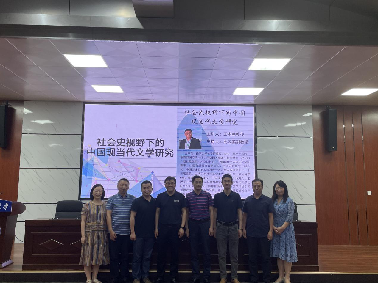 6月5日晚,文学与新闻传播学院邀请西南大学文学院王本朝教授开讲长沙理工大学第十七届研究生博力学术论坛分论坛——社会史视野下的中国现当代文学研究。学院党总支书记伍接朝、副院长魏桃初、中文系主任郑劭荣及150余名教师、学生代表参加,讲座由副院长周云鹏主持。