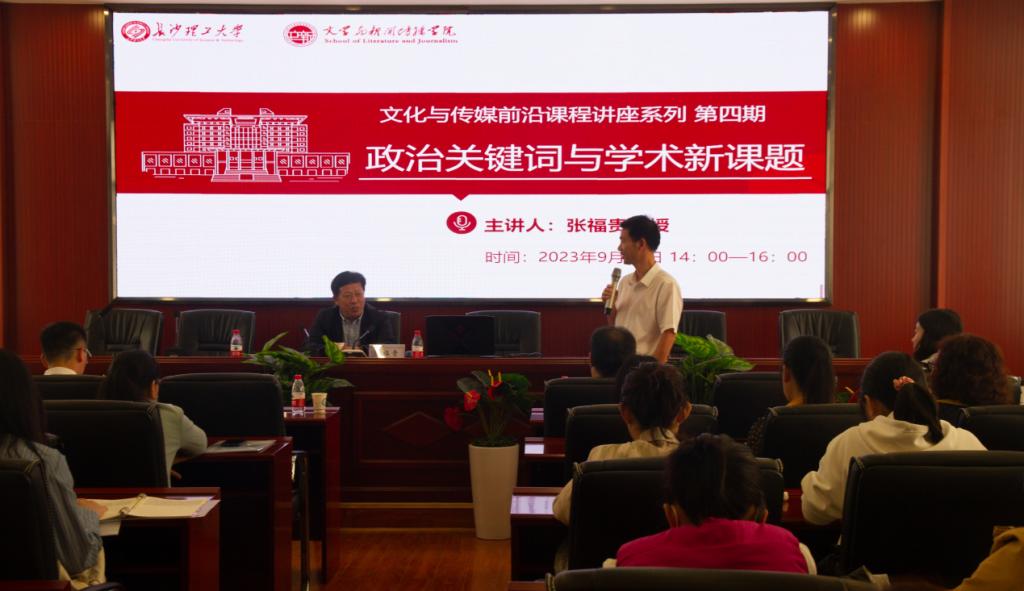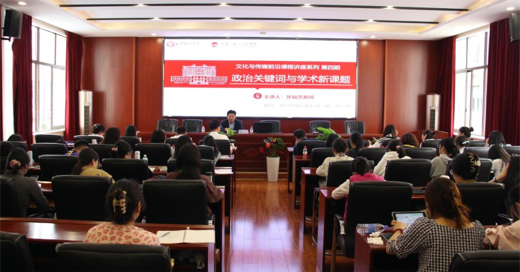 9月24日下午,吉林大学哲学社会科学资深教授、博士生导师张福贵应邀为文新学院师生作题为“政治关键词与学术新课题”的学术报告。这是学院文化与传媒前沿课程讲座系列第四期,由文新学院院长刘建新教授主持,全体中文系教师以及2023级中文系研究生参与讲座。