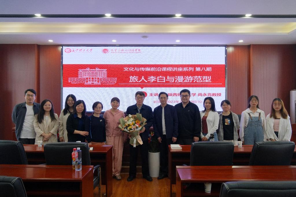 2023年10月19日上午,陕西师范大学文学院教授、博士生导师尚永亮教授在金盆岭校区9教218学术报告厅为我院师生做主题为“旅人李白与漫游范型”的讲座。本次讲座属于我院文化与传媒前沿课程讲座系列,文新学院党委委员、中文系主任郑劭荣教授主持本次讲座,他代表学院全体师生对尚永亮教授表示热烈欢迎,并为同学们介绍了尚永亮教授的学术成就。