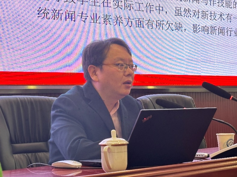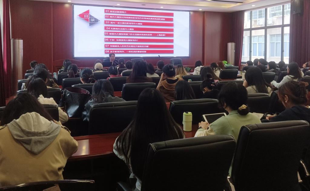 “数据大模型对传统新闻写作在速度与时效性竞争、内容生产效率冲击等方面带来了挑战与威胁,如何使用大模型对于新闻人来说尤为关键”,2024年10月26日下午,长沙理工大学客座教授、新闻传播专业研究生校外导师、资深媒体人陈安庆为新闻传播专业研究生做了一场主题为《ChatGPT大模型时代传统媒体新闻写作的挑战与转型:前沿洞察、实践方略与创新路径》的新闻传播前沿讲座,为同学们打开了一扇了解新闻写作新领域的窗户。陈安庆教授曾任新华网湖南频道副总编、银川晚报社副总编等职务,是中国第一代调查记者的代表性人物,南方传媒书院创始人,其丰富的媒体从业经验和深刻的行业洞察为本次讲座增添了浓厚的学术氛围。