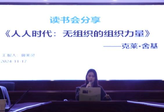 11月17日晚,第三期金岭读书会“悦读经典”系列活动在雷竞技官网金盆岭校区9教218教室顺利举办。此次活动以“无组织的组织力量在数智时代下的机遇与挑战”为主题。文学与新闻传播学院副院长戴钰、赵继光主任出席,陈一点老师点评,前央视主持人、瑞士国家电视台法语主播褚笑为特邀嘉宾,24级新闻班黄星海、冀美灵、蒋雨恬三位同学进行汇报分享,程妍主持,24级新闻班全体研究生参与此次活动。