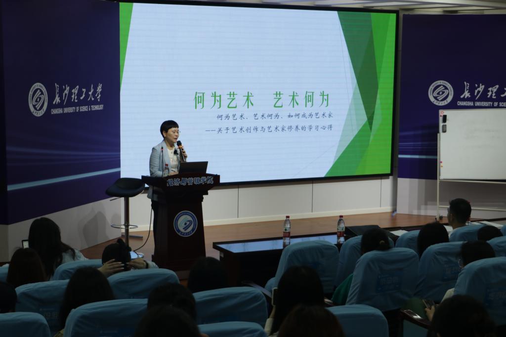 2023年4月13日晚七点,湖南师范大学汤素兰教授做客长沙理工大学,于金盆岭校区12号教学楼200报告厅为我院师生开展主题为“何为艺术,艺术何为”的讲座。本次讲座属于文化与传媒前沿课程讲座系列,文学与新闻传播学院院长刘建新教授担任主持,文新学院22级本科生与研究生参与讲座,共同聆听。