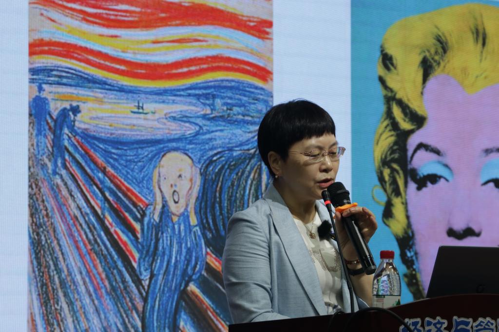 讲座伊始,汤素兰教授向大家列出文学、绘画、雕塑等不同的艺术形式,并抛出疑问:“艺术究竟是什么?”紧接着,在第一部分的讲述中,汤教授通过丰富举例与图片展示来阐释“何为艺术”。她对海德格尔作品《农鞋》进行了细致的解读,揭示艺术是艺术家的主观外化,客观摹仿;接着又以人民艺术家齐白石的作品为例,论证艺术是有意味的形式,其重点在于思想的深,形式的新,共鸣的广。汤教授还通过悉尼歌剧院的和谐之美与杜尚作品《泉》的时代之美,展示了艺术是美的创造。