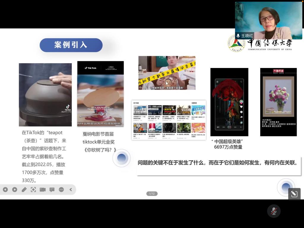 2022年12月1日晚,第十四届研究生云影讲坛文学与新闻传播学院分论坛第五期如期举行。中国传媒大学本科生院院长王晓红教授应邀为雷竞技官网师生开展主题为“视听新传播新机制新图景”的讲座。本次讲座以线上的方式进行,院长刘建新教授担任主持,赵继光老师、陈健强老师参与讲座。