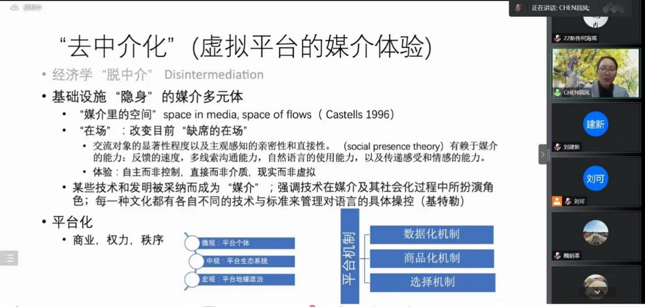 讲授完毕后,进行了线上的交流讨论,同学们纷纷在评论区发表自己的思考,并表示受益颇多,会议气氛尤为浓烈。最后,刘建新院长对本次讲座做了总结,并再次感谢陈昌凤教授生动、丰富、前沿的讲授。