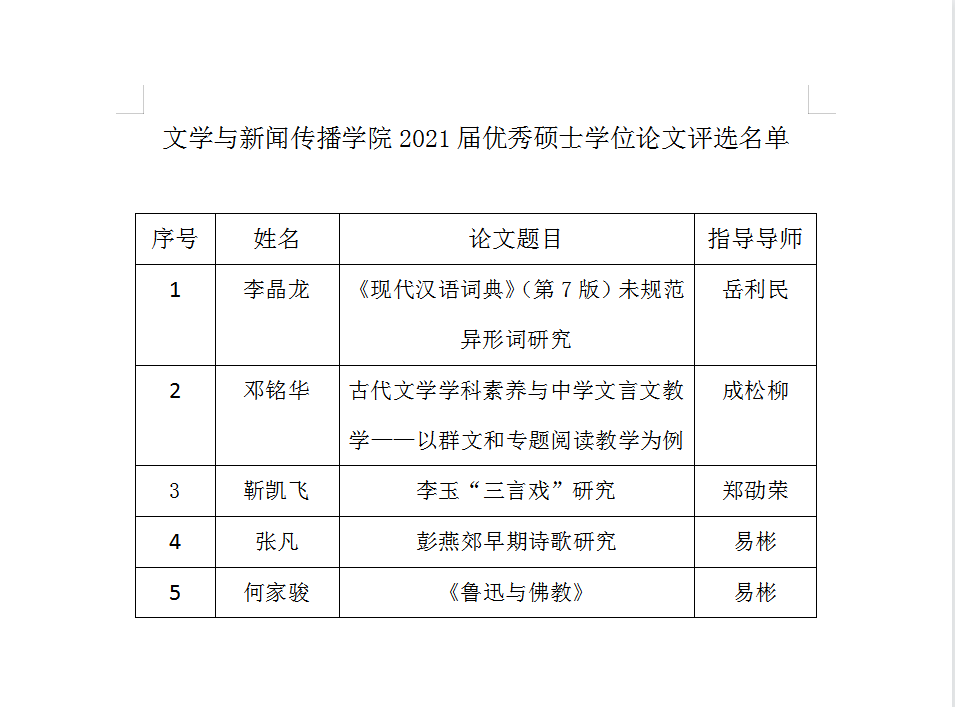 我院2021届优秀硕士学位论文评选名单公示