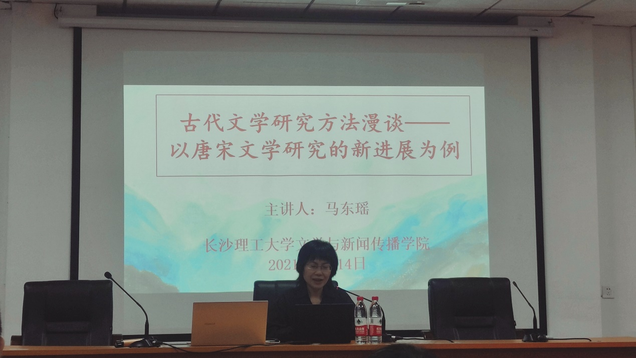 2021年5月14日下午2时30分,北京大学中文系博士、历史系博士后、北京师范大学文学院教授、博士生导师、文学院副院长马东瑶教授受长沙理工大学邀请,在金盆岭校区2教101教室进行了以“古代文学研究方法漫谈——以唐宋文学研究的新进展为例”为主题的学术讲座。讲座由文新院郑劭荣教授主持,来自文新院各级研究生、老师参与此次讲座。