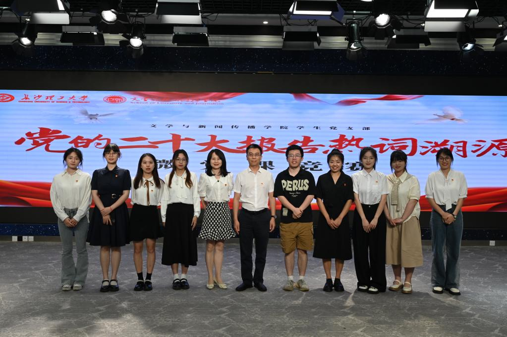 为深入学习领会党的二十大精神,2023年6月25日,文新学院在云塘校区文科楼B300举办“党的二十大报告热词溯源”学生微党课决赛。此次比赛隶属于中华文化节系列活动,由校团委、学工部、研究生院、图书馆主办,文新学院党委承办。马克思主义学院教授张可荣、校党委组织部组织科科长邵巧艳、湖南省普通高校教学能手文新学院新闻系教师曾志华、文新学院党委副书记(主持工作)陈仁凯、党委副书记刘莎担任比赛评委,学生党总支副书记陈鑫宇和全体学生党员参加了此次活动。
