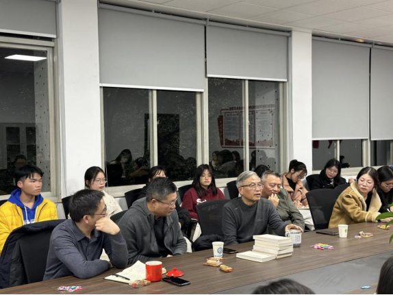 2023年11月30日晚,第二期“长理中文岭上谈”师生交流活动在长沙理工大学金盆岭校区九号教学楼中文系会议室举行。今年正值长沙理工大学中文系建系40周年,为了增进对中文系建设历史的了解,学习前辈的求学治学经验,中文教工党支部特别邀请亲历中文系最初建设过程的成松柳教授担任主讲嘉宾。文新学院陈仁凯书记、周云鹏副院长、郑劭荣教授、建筑学院副院长欧阳国辉教授、王轶老师、图书馆张裴皓老师与中文系部分老师也来到现场,全程参加了本次活动。