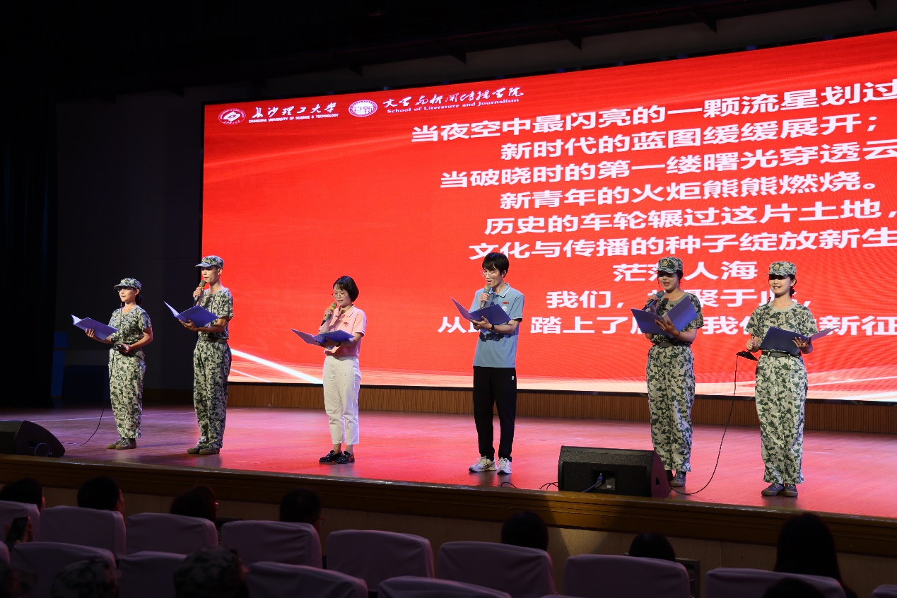 2024年9月30日晚,长沙理工大学文学与新闻传播学院在金盆岭校区5教大礼堂举行2024级本科新生开学典礼,院长刘建新、院党委书记陈仁凯、院党委副书记刘莎、副院长戴钰、院党委委员、各系部主任、书记、行政办公室主任、新进青年教师培养导师、新进青年教师、全体辅导员及新生班主任、下班党员、下班团干出席,全体2024级本科新生参加。典礼由院分团委书记、2024级本科生辅导员杨雅蒙主持。