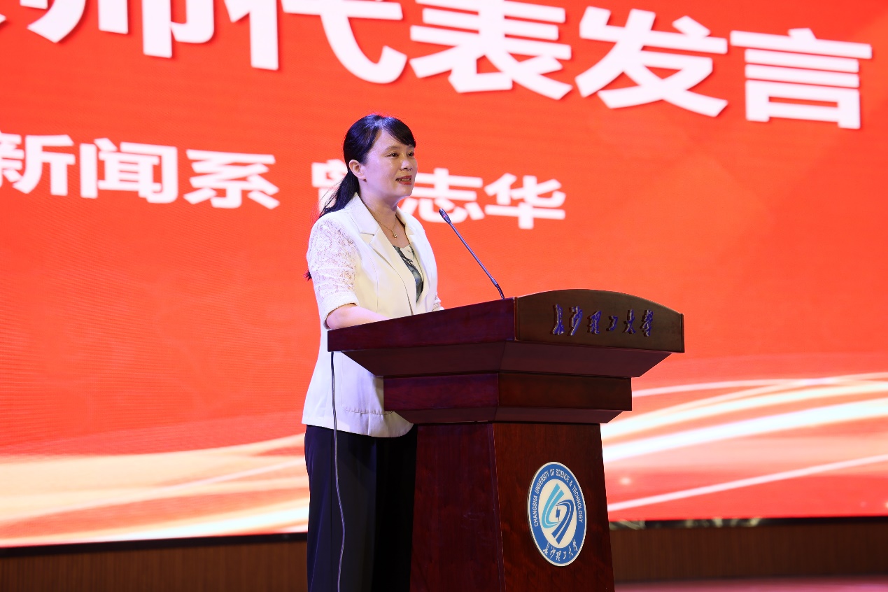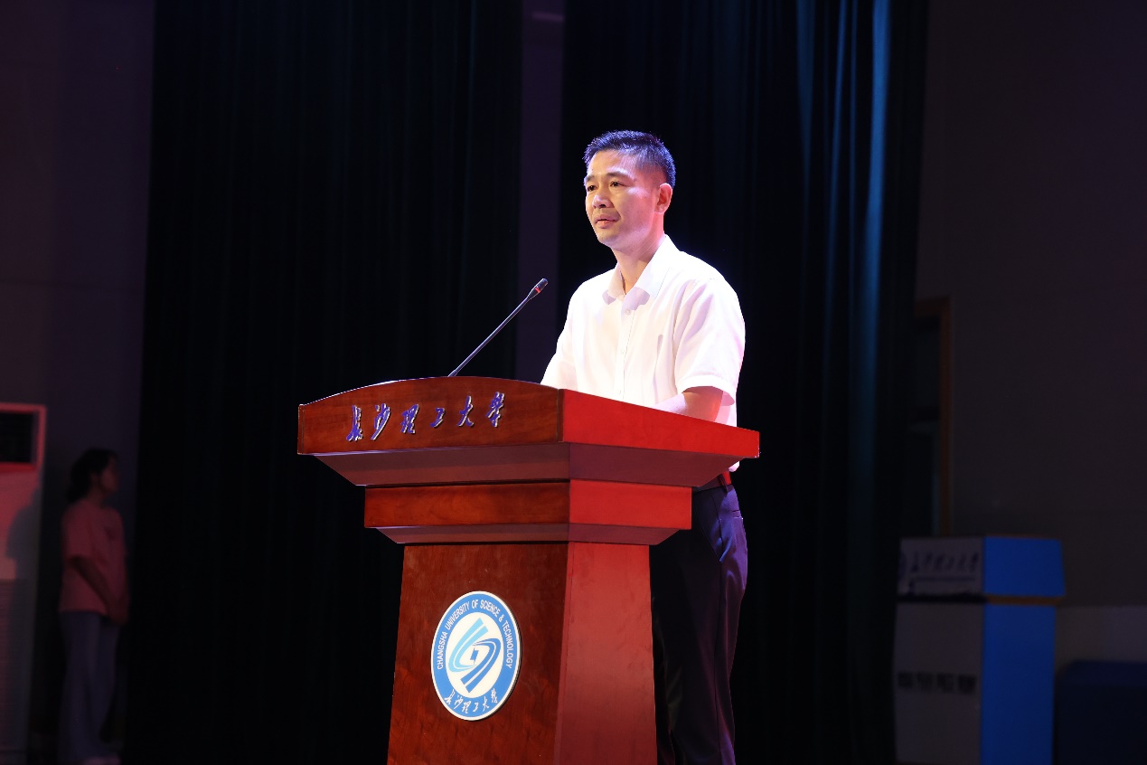 院长谆谆教诲润人心田。其后,2024年度长沙理工大学教学贡献奖获得者新闻系曾志华老师发言,给出“好好去爱”“读万卷书行万里路”两句话,希望同学们做到强健身体、涵养心灵、管理时间三件事,并以优秀校友事迹激励学生,传递长理荣光。