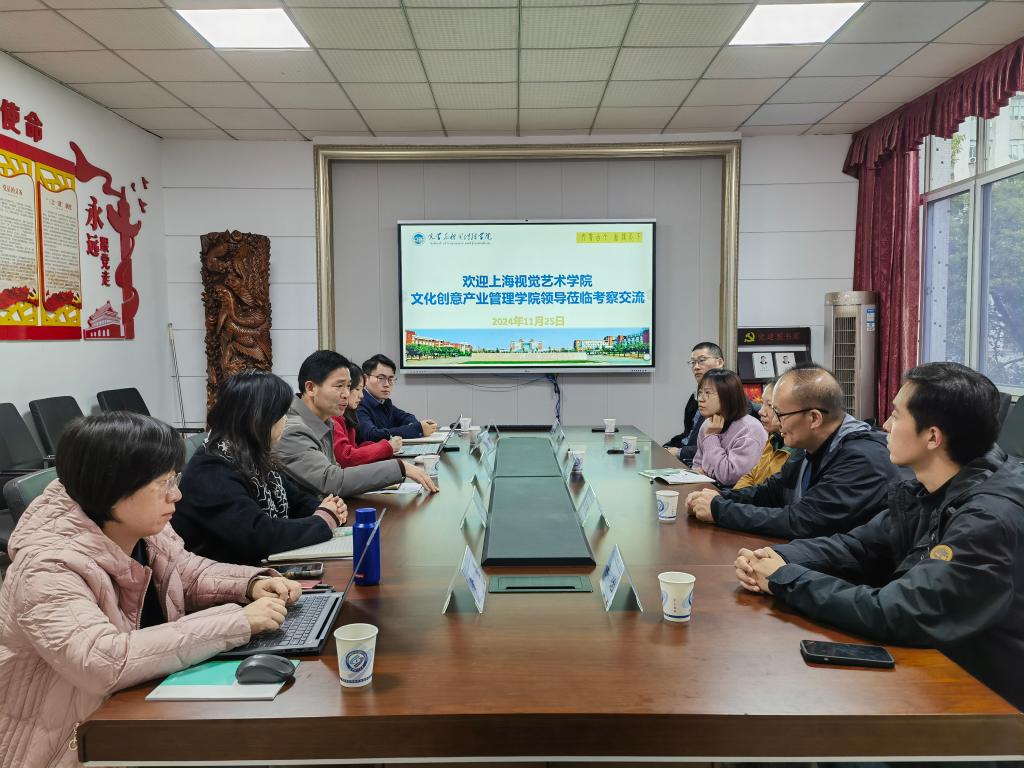 11月25日上午,上海视觉艺术学院文化创意产业管理学院书记王芳一行来我院调研交流,院长刘建新接待了客人并在学院会议室举行了会谈。相关院领导和系部负责人参加座谈。
