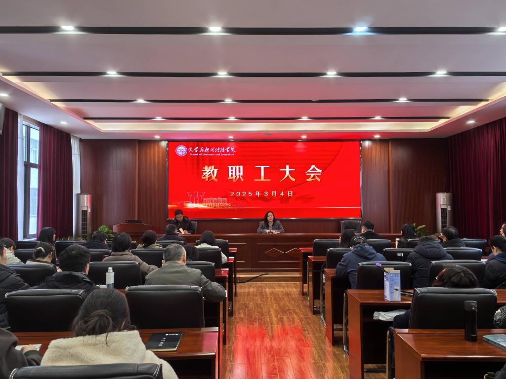 3月4日下午,学院在院学术报告厅召开教职工大会。会议由党委副书记(主持工作)李娜主持,全体教职工参会。