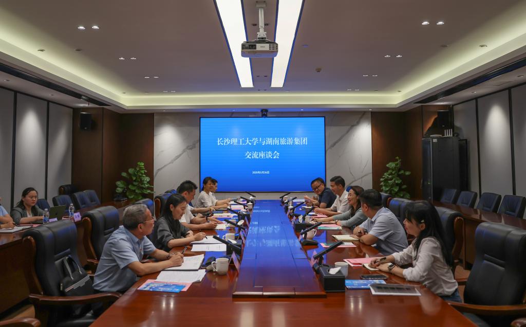 为深化校企合作,拓宽学生就业渠道,助力人才培养与产业需求精准对接,2025年5月26日下午,长沙理工大学党委副书记方琼带队赴湖南旅游发展投资集团有限公司(以下简称“湖南旅游集团”)调研交流。湖南旅游集团党委副书记、职工董事李域,董事会秘书、华天集团党委书记侯涯宾,人力资源部(党委组织部)副部长(主持工作)胡澜、人力资源部(党委组织部)副部长张红、人力资源部人才建设岗高级主管杨滨璐、湘诚现代党委副书记余命根、人力资源部(党委组织部)部长向湘莉、华天集团人力总监袁颍代表企业出席座谈会。创业就业指导处处长田上、文学与新闻传播学院院长刘建新、党委副书记(主持工作)李娜、党委副书记刘莎、经济与管理学院党委副书记汪功伟陪同调研。
