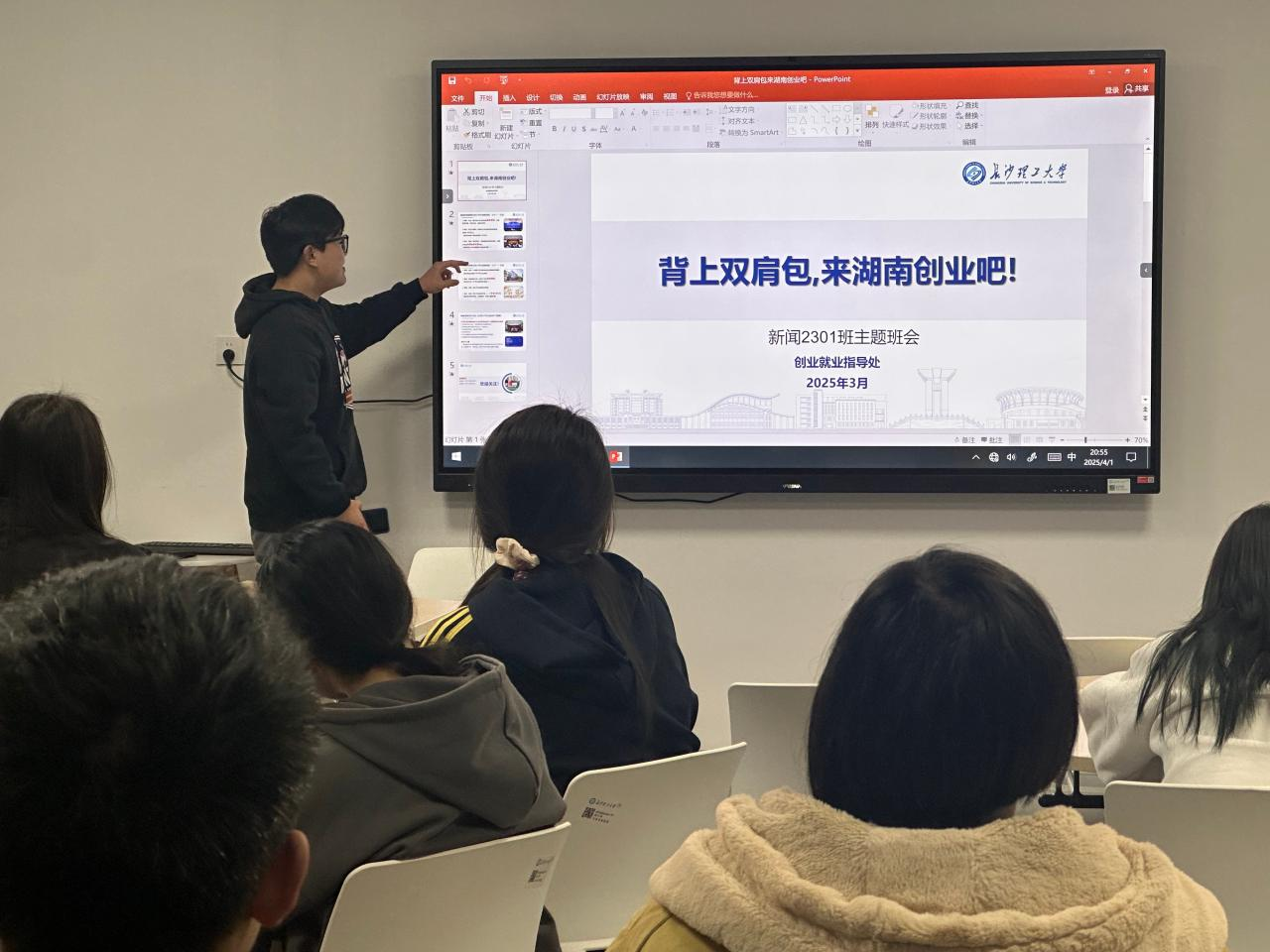 为深入贯彻湖南省支持大学生创业政策精神,激发学生创新创业活力,文新学院于2025年3月31日至4月2日组织各班级召开学习湖南省大学生创业政策主题班会。