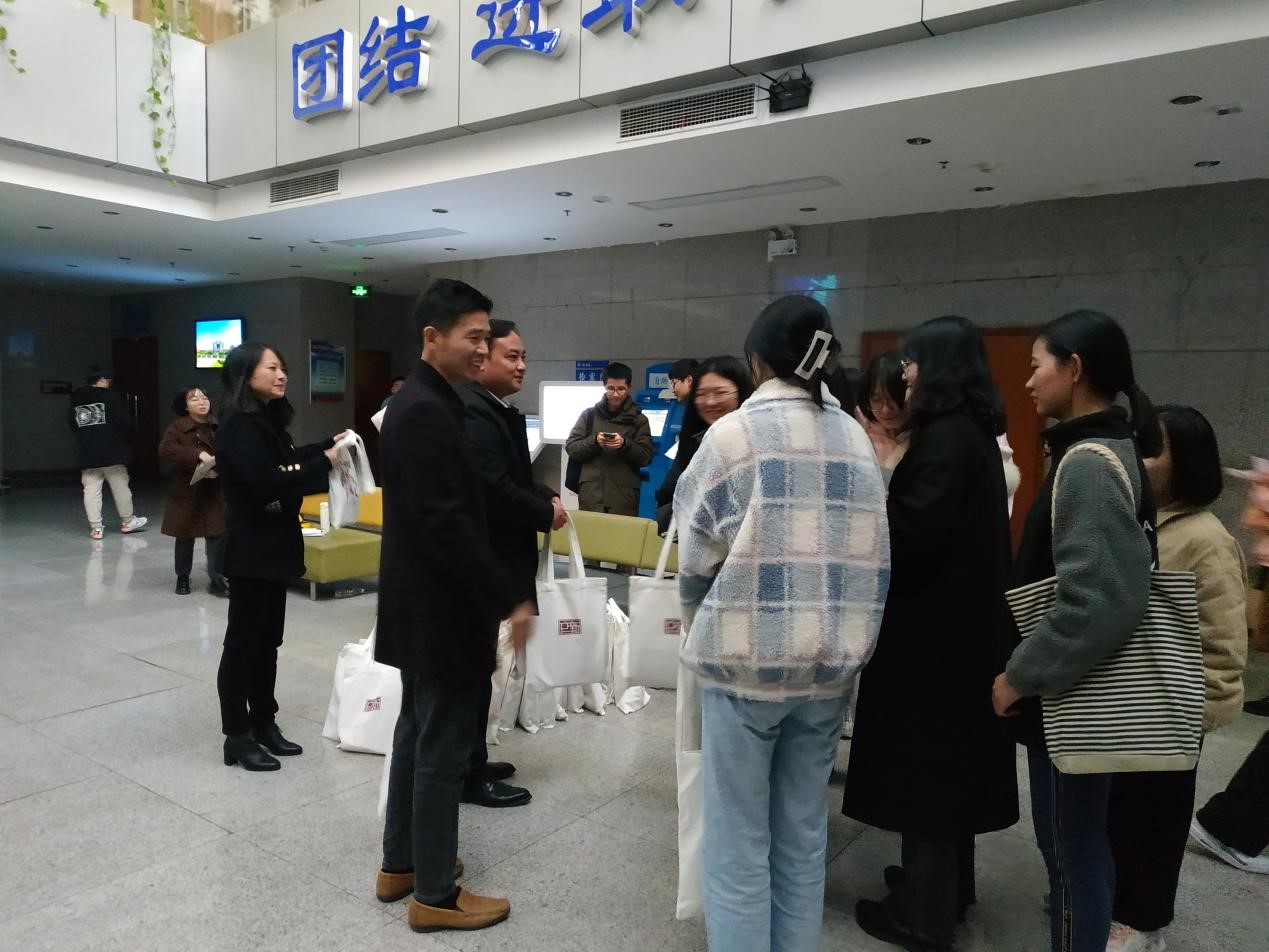 (在图书馆学习的学生纷纷来到二楼大厅领取专属考研礼包)