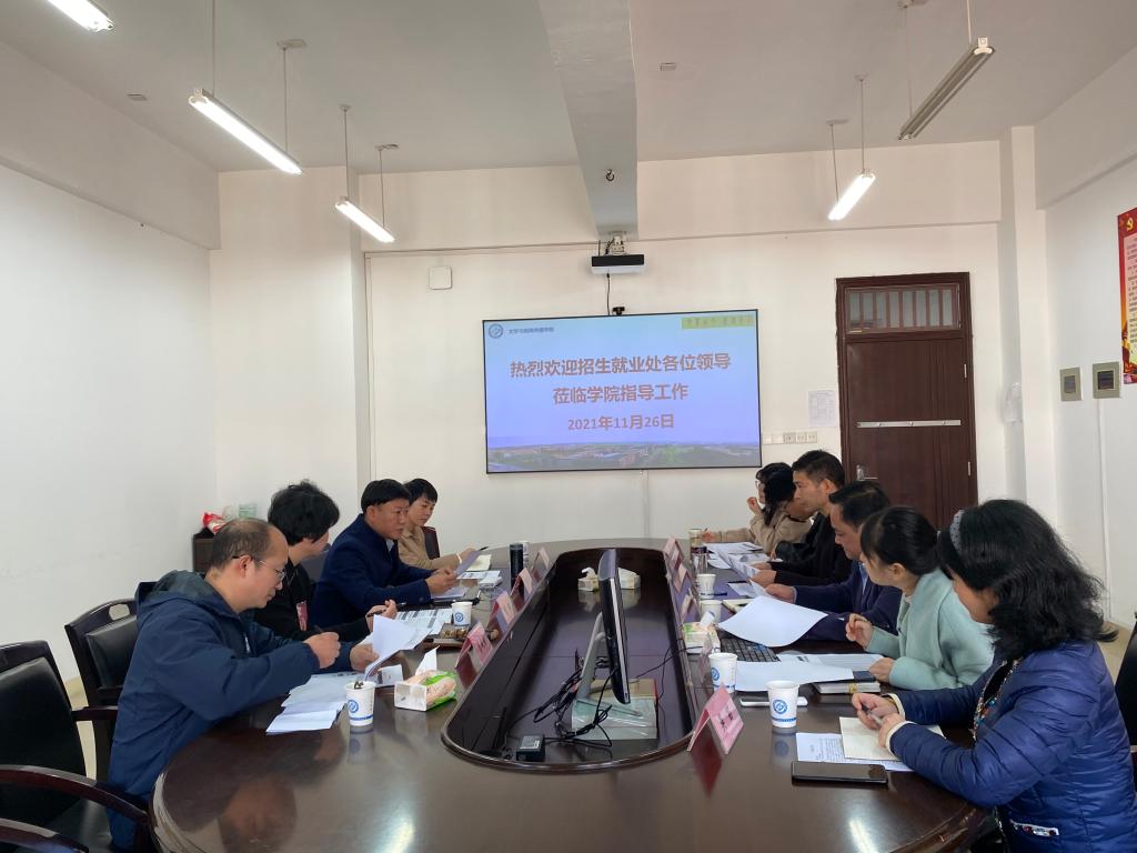 11月26日上午,学校招生就业处处长曹瑛、副处长田向阳等一行来我院调研指导招生就业工作,院党委书记伍接朝、院长刘建新、党委副书记刘莎和就业指导老师吴笛参加座谈。