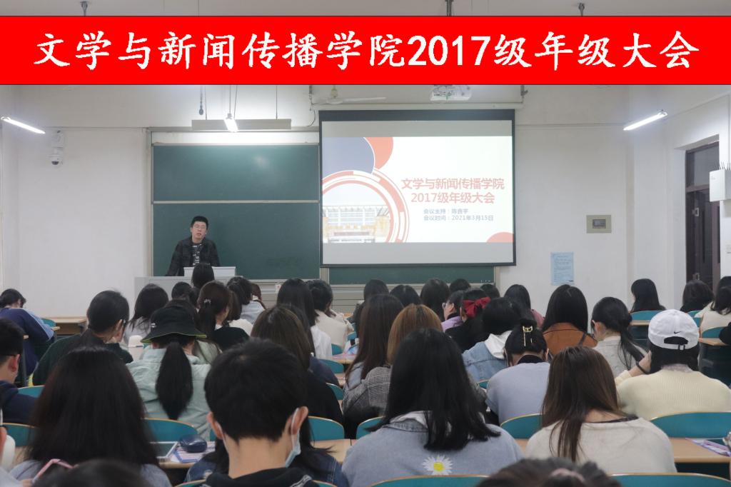 2021年3月15日下午文学与新闻传播学院春招动员会于文科楼B403召开,党总支书记伍接朝、辅导员陈鑫宇出席,2017级本科毕业生参加了本次大会会议由陈鑫宇主持。