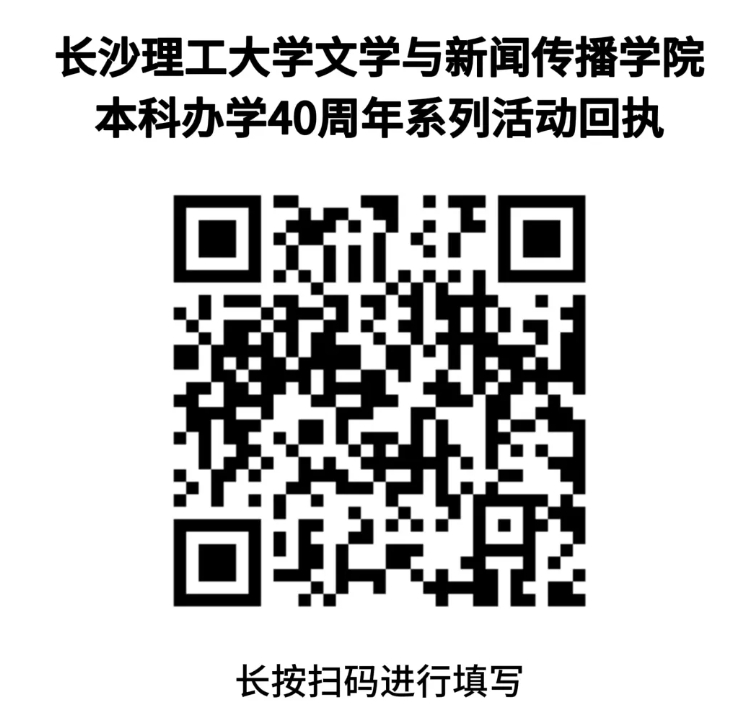 线上捐赠:长按识别下方二维码,进入“长沙理工大学教育基金会”——“文学与新闻传播学院发展基金”页面,即可进行在线捐赠。