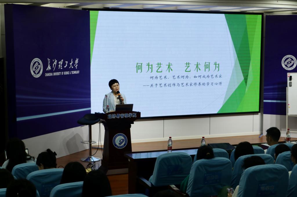 2023年4月13日晚七点,湖南师范大学汤素兰教授做客长沙理工大学,于金盆岭校区12号教学楼200报告厅为我院师生开展主题为“何为艺术,艺术何为”的讲座。本次讲座属于文化与传媒课程讲座系列,文学与新闻传播学院院长刘建新教授担任主持,文新学院2022级本科生与研究生参加了讲座,共同聆听,报告厅座无虚席。