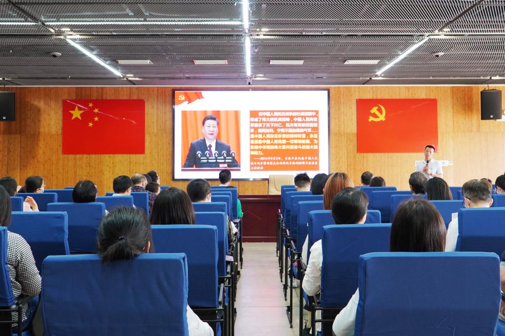 田汉文化园是湖南省文物保护单位和省级爱国主义教育基地。田汉是中华人民共和国国歌的词作者,田汉的一生,不断追求理想,追求光明,坚持以人民为中心而创作、为中国戏剧事业奋斗。长沙县委党校高级讲师李阳岳在田汉艺术中心为全体教职工讲授题为《国歌的力量》的专题党课,“《国歌》不止是一首歌,是来自历史的回响,是居安思危的冲锋号,更是中华民族伟大复兴的动员令。昔日,民族兴亡匹夫有责,如今,伟大复兴你我同样责无旁贷!”李老师娓娓道来地讲述了国歌所蕴含的斗争精神、团结精神、进取精神以及在国歌的感召下中华儿女在民族的历史进程中所迸发出的伟大力量。一个个感人至深的革命故事,让大家深刻领悟到新时代仍需要体会国歌中居安思危、众志成城的精神,捍卫国歌尊严,更要传承国歌精神。