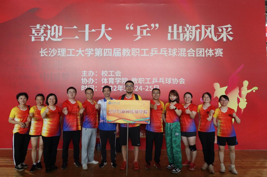 9月24日,以“喜迎二十大,‘乒’出新风采”为主题,长沙理工大学第四届教职工乒乓球混合团体赛在云塘校区体育馆乒羽中心拉开帷幕。在党委副书记陈仁凯,院长刘建新的带领下,我院十二名教职工积极参与本次活动,共享这一场运动盛宴,展示了教职工风采。