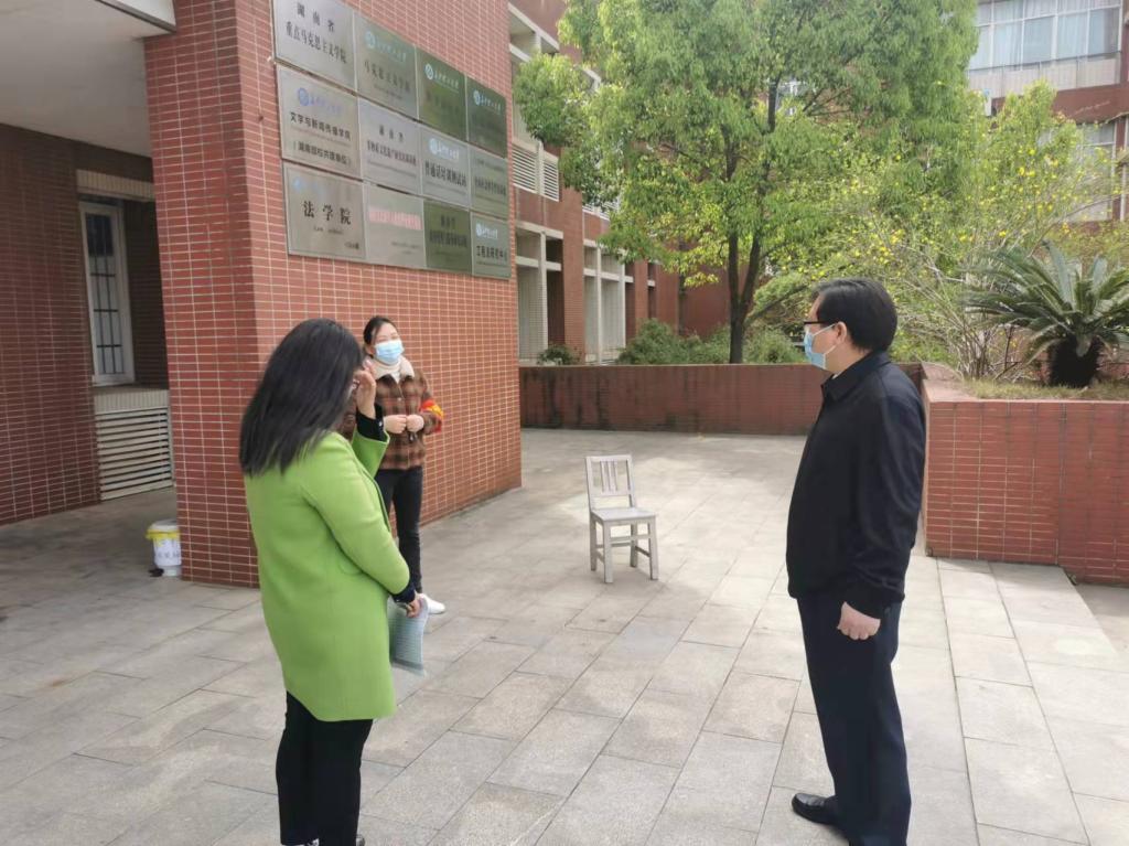 4月4日上午,学校党委副书记刘建民再次来到学院检查指导疫情防控工作,学院党委书记伍接朝、副院长耿蕊陪同检查。