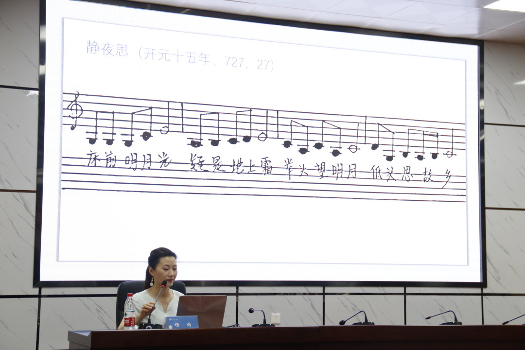 杨雨总结了品读诗词的三种途径:记诵吟唱、知人论世和以意逆志。她分享了吟诵的基本原理,并现场用粤语吟唱了《静夜思》,伴随着抑扬顿挫的声音旋律,在场师生感悟到了古典诗词的魅力。她补充说,我们用人生阅历去读诗,用自己的经历去解读诗歌所蕴含的思想和情感时,一定会打开更加独特而开阔的诗歌天地。