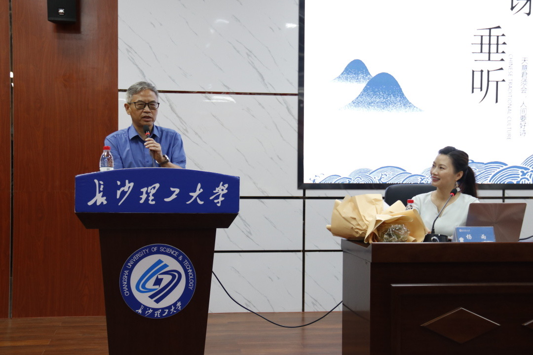 “诗是什么?”“什么叫诗人?”“你会读诗吗?”9月26日,曾任央视《百家讲坛》、《中国诗词大会》嘉宾的杨雨教授做客研究生云影讲坛,中南大学文学与新闻传播学院教授易彬,长沙理工大学文学与新闻传播学院党委书记伍接朝,院长刘建新教授,党委副书记刘莎,副院长魏桃初副教授,院党委委员、中文系主任郑劭荣教授,校研究生院相关领导及来自全校各学院的两百余名师生参加,讲座由湖南省人民政府参事、长沙理工大学文学与新闻传播学院成松柳教授主持。