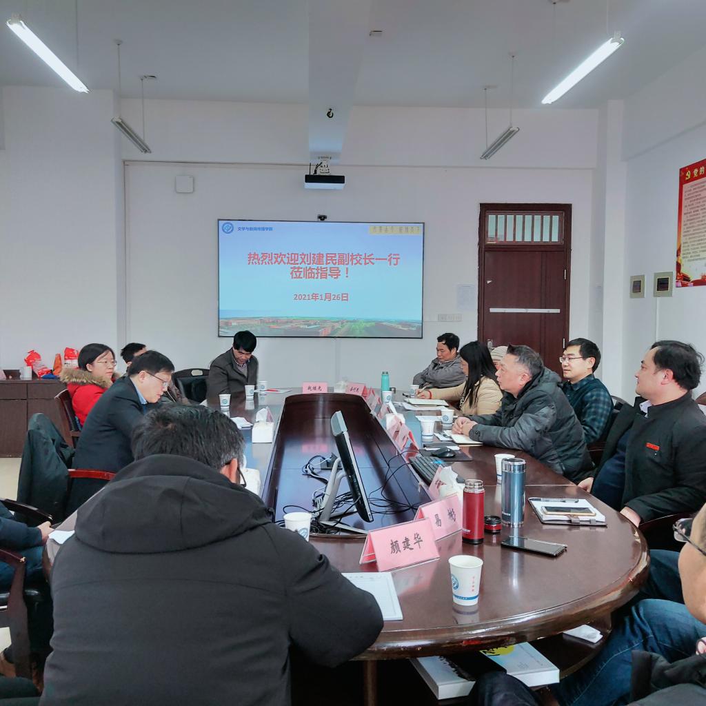 1月26日下午,副校长刘建民来学院调研。学院党总支委班子成员、教授、各系(办)主任、教工支部书记、教师代表等二十多人参加调研座谈会。调研座谈会由学院党总支书记伍接朝主持。