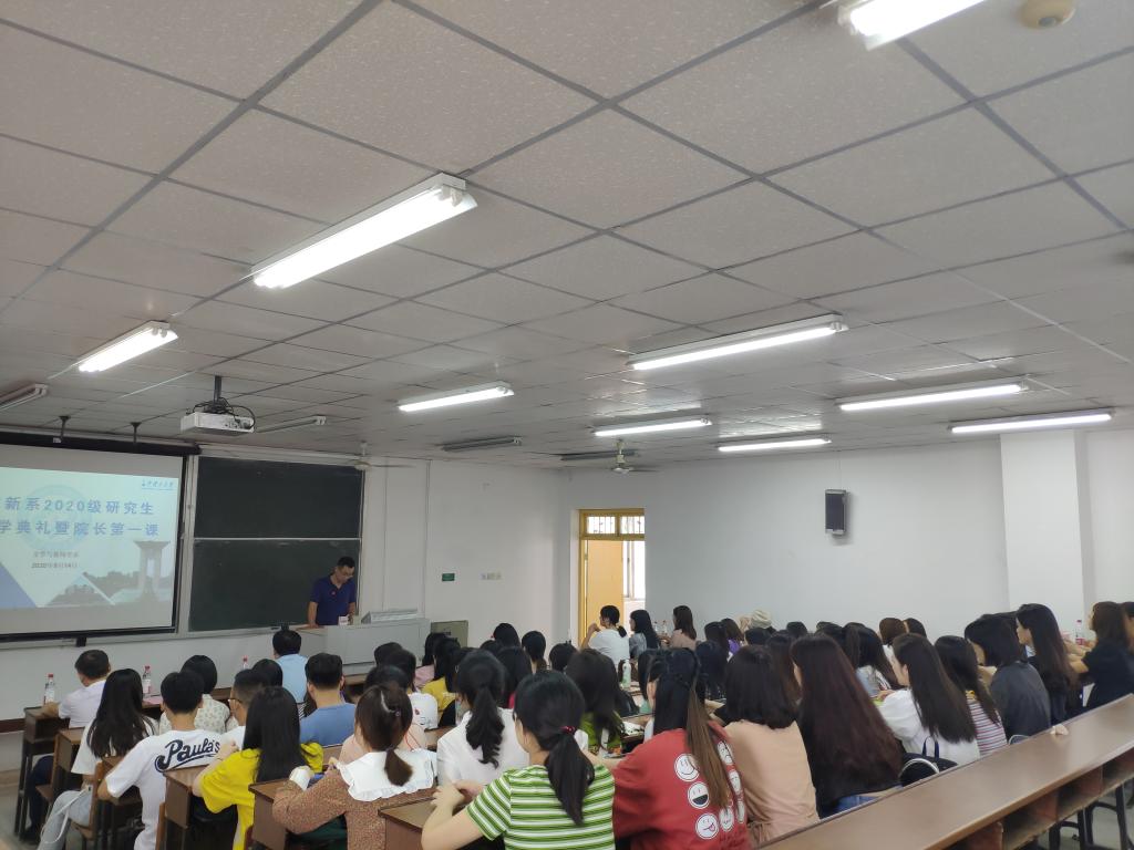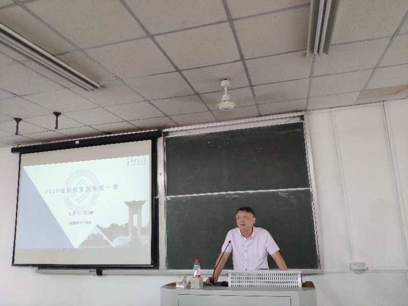 典礼之后,周云鹏教授为我们讲授了生动的开学第一课。首他先从校史校情和系情方面向我们介绍了长沙理工大学文新系的发展历程;其次强调作为一名研究生,要遵守学术规范和学术道德,呼吁大家要有扎实的专业知识和较强的实践能力。最后从个人角度出发,号召大家要厚植家国情怀和远大理想,将“中国梦”、“长理梦”和“个人梦”结合在一起。
