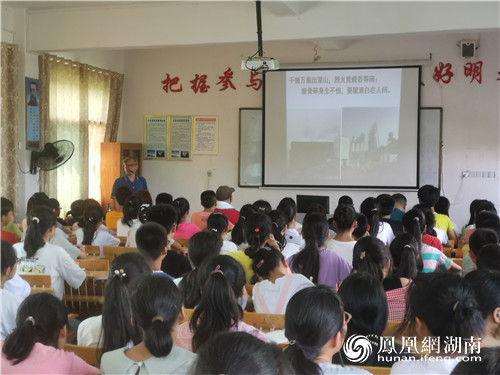 凤凰网湖南讯(通讯员 邓铭华)7月2号,湖南省人民政府参事,长沙理工大学文学与新闻学院成松柳教授、颜建华、宁淑华三位教授,在学校研究生院田上副院长的陪同下,驱车五个小时,从长沙来到学校扶贫点新宁县水庙中学,给学生们做了主题分别为《诗与诗意》、《古典诗歌的吟诵》等讲座,助力文化和教育扶贫。