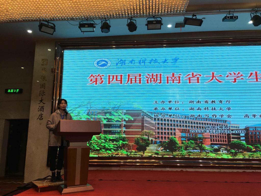 11月10日上午,为期两天的第四届湖南省大学生写作竞赛在湖南科技大学圆满落幕。我院汉语言文学专业王天怡同学斩获一等奖,肖非辉,石小萌,胡丹宁三位同学获得三等奖。雷竞技官网再获组织奖。
