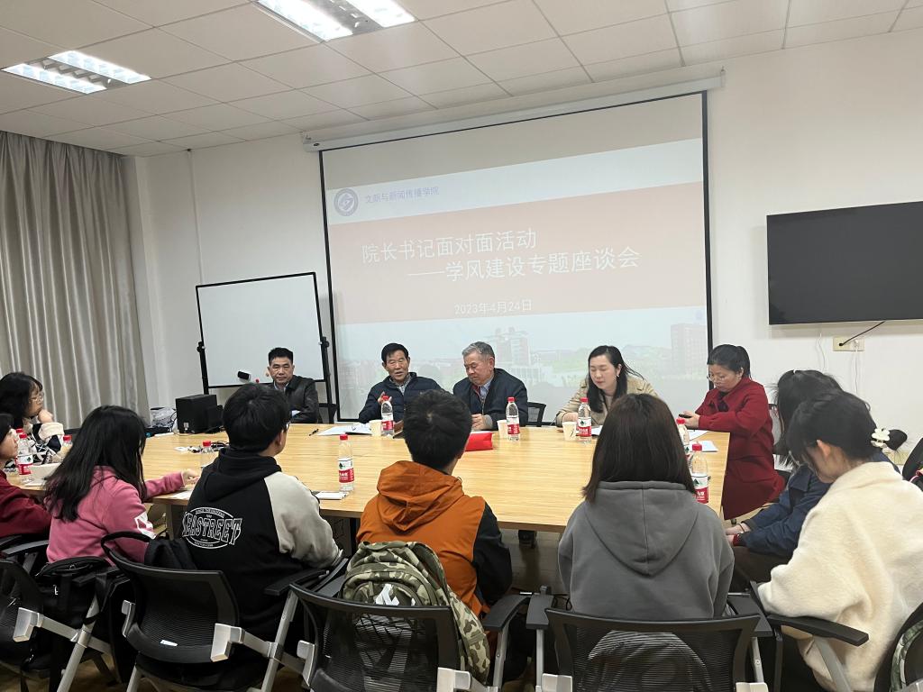 树学风,争优先。为切实加强学校学风建设,夯实“学在长理”工作内涵,促进优良学风形成,我院在424日金盆岭7316会议室开展“院长书记面对面”学风建设活动。会议由学院副院长戴钰主持,关工委主任王乃厚、学院关工委老师潘子初、新闻系主任赵继光、中文副系主任周静、科研办主任刘可、辅导员吴笛及10余名学生代表参与。