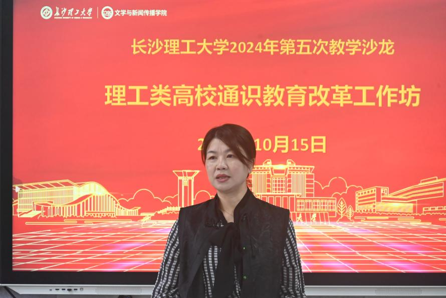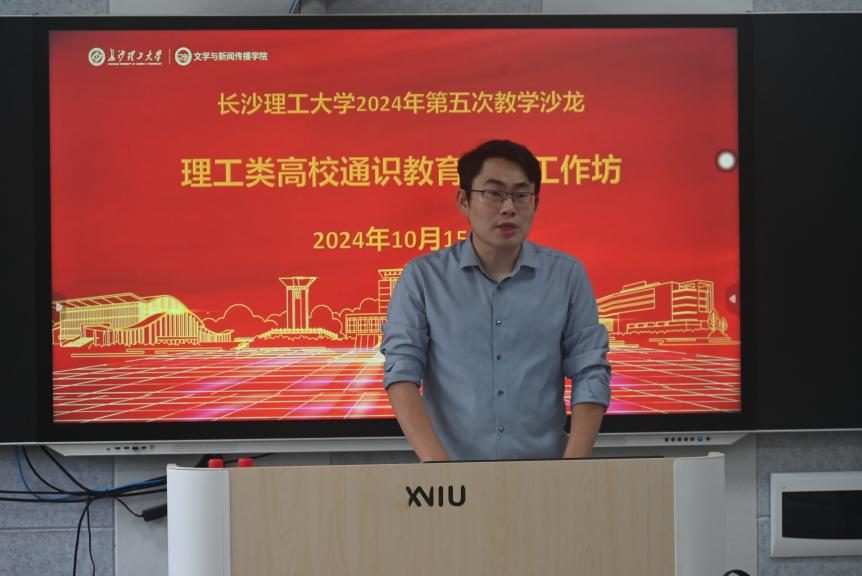 10月15日下午,由教务处主办、文新学院承办的长沙理工大学2024年第五次教学沙龙在金盆岭校区九教415室举行。本次沙龙活动紧密围绕“理工类高校通识教育改革”“写作与沟通课程改革”两个主题进行了专题研讨。会议邀请湖南大学文学院教授、中国写作学会理事、湖南省写作学会常务副会长胡辉杰主讲。学校高教改革与质量评价研究所副所长郑咏梅、高教改革与教学能力培养办公室主任张勇、中文系全体教师,以及各教学院教师代表共40余人一起参加了本次教学沙龙活动。会议由院党委委员兼中文系主任侯承相主持。