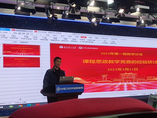 说课环节结束后,长沙理工大学教务处副处长邓丰进行题为“课程思政的教学设计”的主题讲座。她根据多年参加高校教师竞赛的成功经验,介绍了湖南省四大高校教师教学竞赛的基本赛制、教学设计的要点、教学竞赛与一流课程如何有效衔接等内容进行精彩讲解。邓丰认为,学院组织的竞赛工作准备充分、组织有序,并用“感谢”、“感动”、“感慨”充分肯定了这次竞赛工作。她还对我院组织的这次竞赛预演作了总结,她赞赏三位教师的教学风采,并预祝我院在本次参加课程思政教学竞赛取得佳绩。