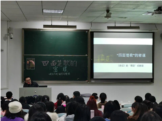 11月30日晚上7:00,中文系王勉博士在长沙理工大学金盆岭校区6教107教室为全系学子主讲了一场题为“四面楚歌的密谋:《史记》的‘填空式’解读”的讲座。