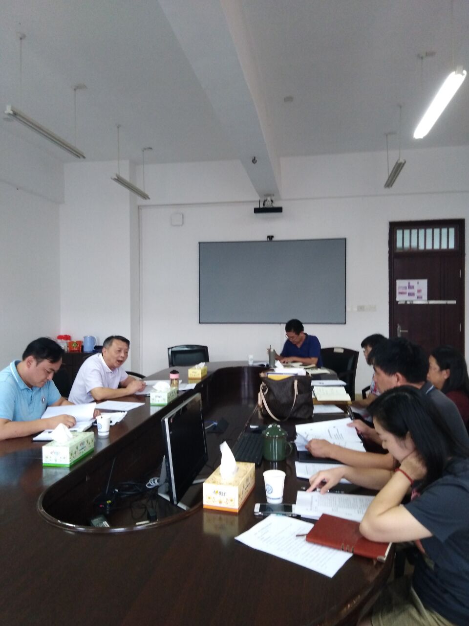 9月2日下午,我系召开新闻学专业申报一流专业建设点的工作反馈会议。文新系党总支书记伍接朝、副主任周云鹏、副主任魏桃初、系党总支委员、新闻学专业学科带头人耿蕊、新闻系主任赵继光以及新闻学专业部分骨干教师参加了此次会议。会议由系党总支书记伍接朝主持。