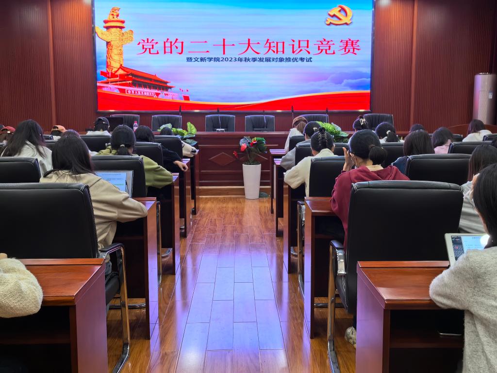 为深入落实并贯彻落实党的二十大精神,积极探索“互联网+党建”的新模式,进一步提升入党积极分子的理论知识能力水平,10月19日19时,“党的二十大知识竞赛暨文新学院2023年秋季发展对象推优考试”于雷竞技官网金盆岭校区九号教学楼218室成功举行。