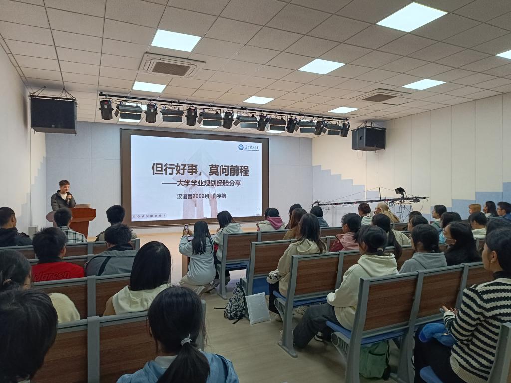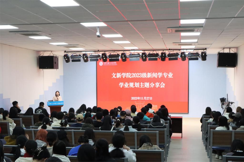听榜样分享,思学业规划,增前进动力,促奋斗青春。文新学院于11月27日、29日晚在金盆岭校区九教113会议室分专业举行了两场学业规划分享会,邀请20级保研学生为23级新生分享大学学业规划经验。23级辅导员李婵出席,全体新生参加。