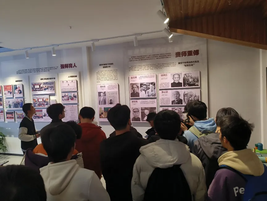 “三全育人”教育基地内部展览共设分成四个主题篇章,分别命名为国之大者、材之茂者、师之贤者、行之实者。长沙理工大学作为中国高等教育恢弘历史的缩影,始终坚持“党办的大学让党放心、人民的大学不负人民”的价值追求,牢记“为党育人、为国育才”初心使命,取得了丰硕的育人成果。同学们在基地讲解员的带领下认真参观学习,对学校发展历史有了更深入的了解,也更进一步坚定了刻苦学习、立志报国的决心。