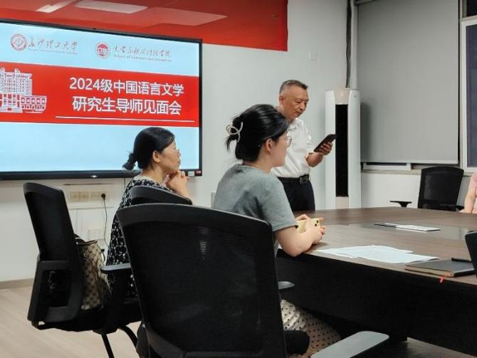 9月13日晚上,长沙理工大学文学与新闻传播学院中国语言文学专业2024级硕士研究生导师见面与双选会在九教318学术报告厅成功举行,研究生导师及全体研究生新生参与了此次会议。文学与新闻传播学院党委委员、纪委书记周云鹏主持了此次见面会。