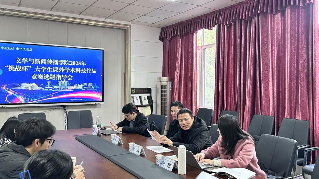 为提高竞赛项目质量,带动师生参赛热情,1月14日下午,文学与新闻传播学院在9教321会议室召开2025年“挑战杯”大学生课外学术科技作品竞赛选题指导会。长沙理工大学经济与管理学院教授黄维受邀莅临我院进行竞赛选题指导,文新学院院长刘建新、党委副书记刘莎、党委委员兼中文系主任侯承相出席本次会议,部分师生代表参加。