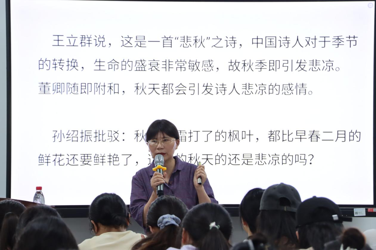 最后,宁淑华谈及自晚清废除科举后,古典诗文教育断层,导致公众对诗词解读普遍“似是而非”的现象,呼吁同学们在诗词理解上应重视对诗词精确解读,避免分析过度娱乐化和主观臆断,要回归文本本身与文化传统。此次讲座通过多维度深入解析,让同学们深刻认识到诗词解读需兼顾语言、文化与逻辑。这将助力同学们更好地领略古典文学的魅力,延续文化命脉。