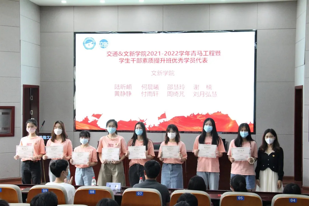 为提升学生干部新闻采写与宣传能力,6月7日14时,文新学院与交通学院2021-2022学年青马工程暨学生干部素质提升班第三课以及结业仪式在工科2号楼B301举行。本次课程由校党委宣传部成员伍佩桢、刘飘逸与李泰儒三位主讲,交通学院团委书记彭笠、文新学院团委书记李敏出席,全体青马班成员参加。